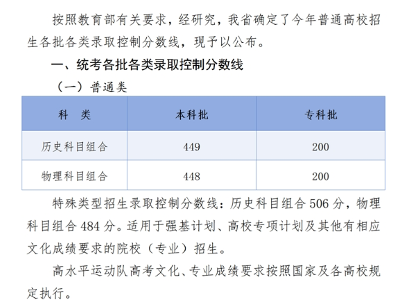 河北省2024年高考各批各類錄取控制分數線: