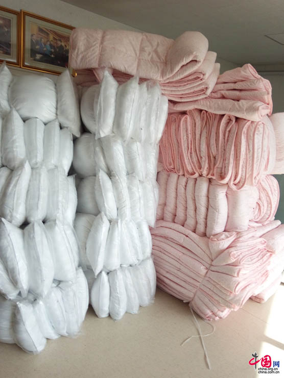 為讓老人住的舒適暖和,易連軍剛剛采購了一批被子和枕頭。被子的薄厚適合現在的氣溫,蓬松的枕頭防止壓傷耳朵。