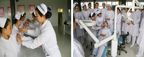 學生進行止血訓練                                                   實訓教師示范牙齒清潔手法