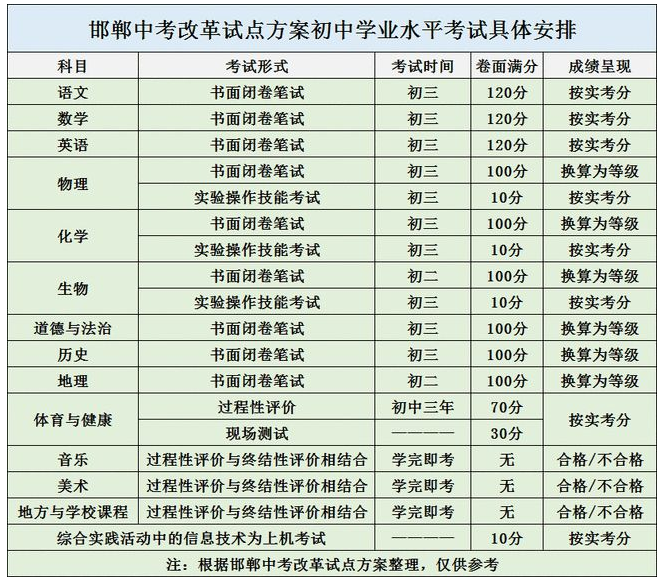 邯鄲從2018年秋季入學的新初一開始實行改革,到2021年初步形成基于初中學業水平考試和綜合素質評價的中考錄取模式。
