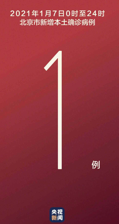 1月7日0時至24時,北京新增1例本地確診病例,無新增疑似病例和無癥狀感染者;無新增境外輸入確診病例、疑似病例和無癥狀感染者。