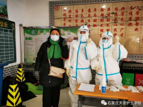我叫田瑩瑩,家住安徽阜陽,現居石家莊,是石家莊天使護士學校的畢業生,班級1709,因突發疫情,需要全市人員做核酸檢測,身為一名醫護學生,自愿參加報名志愿者 ,在做好自身的防護工作下,和專業的醫護人員配合為每一位居民登記做檢測,經歷三天的努力,圓滿完成第一次采集。