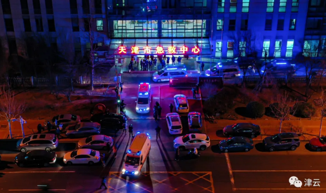 天津醫(yī)療急救隊(duì)在夜色中出發(fā)